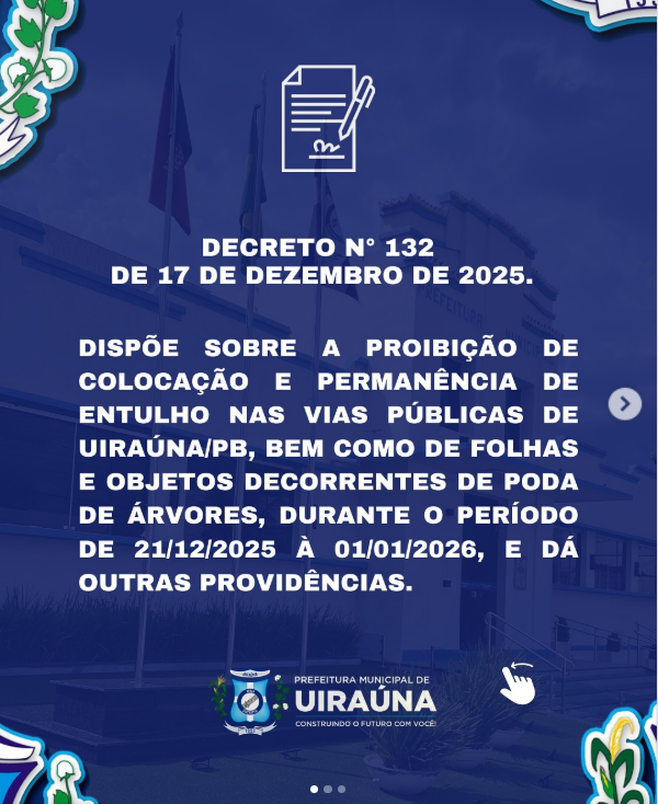 A Prefeitura de Uiraúna oficializou novas regras para a limpeza urbana durante o período de festas de fim de ano. Por meio do Decreto nº 132, publicado em 17 de…